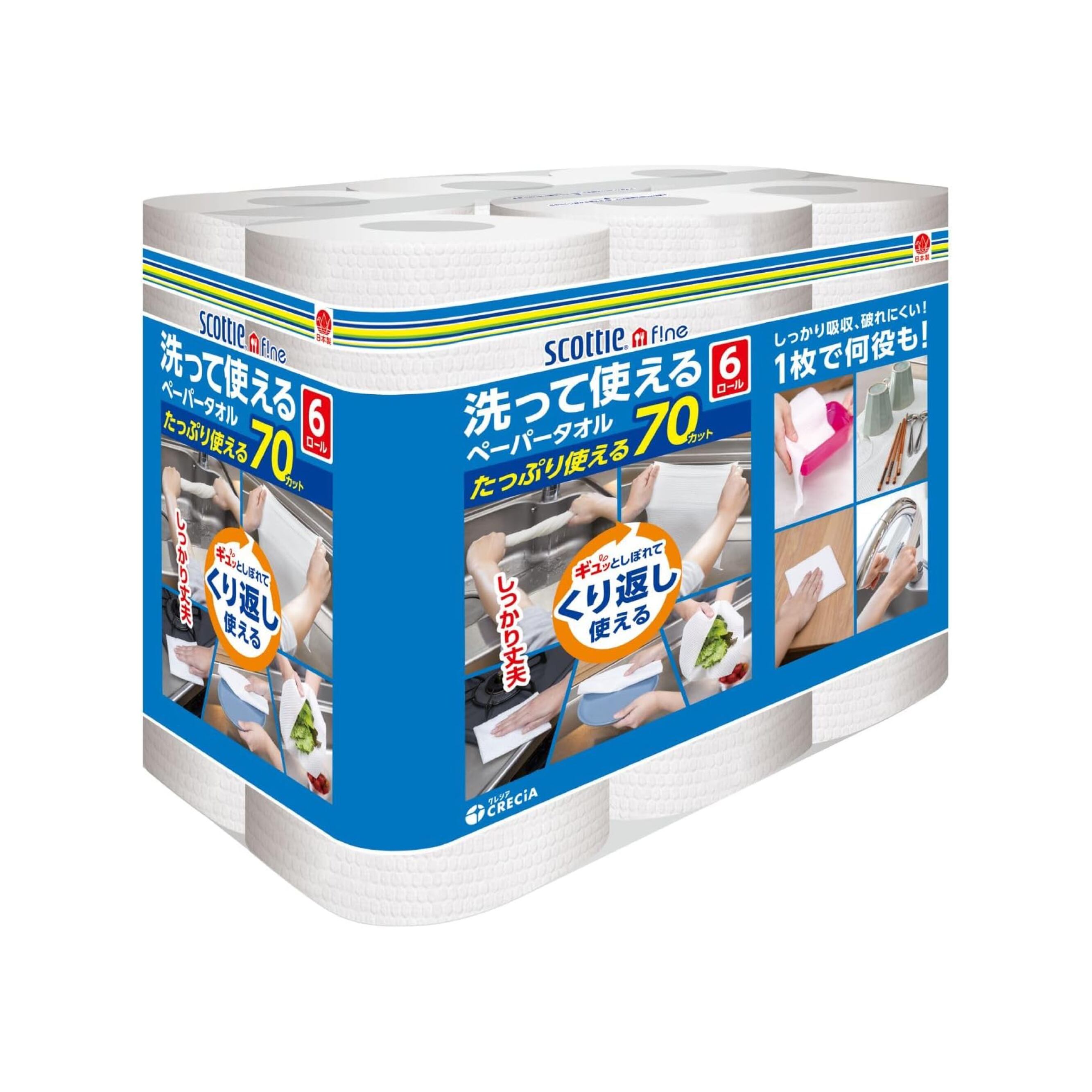 スコッティ ファイン 洗って使えるペーパータオル 無地 ホワイト 70カット 6ロール