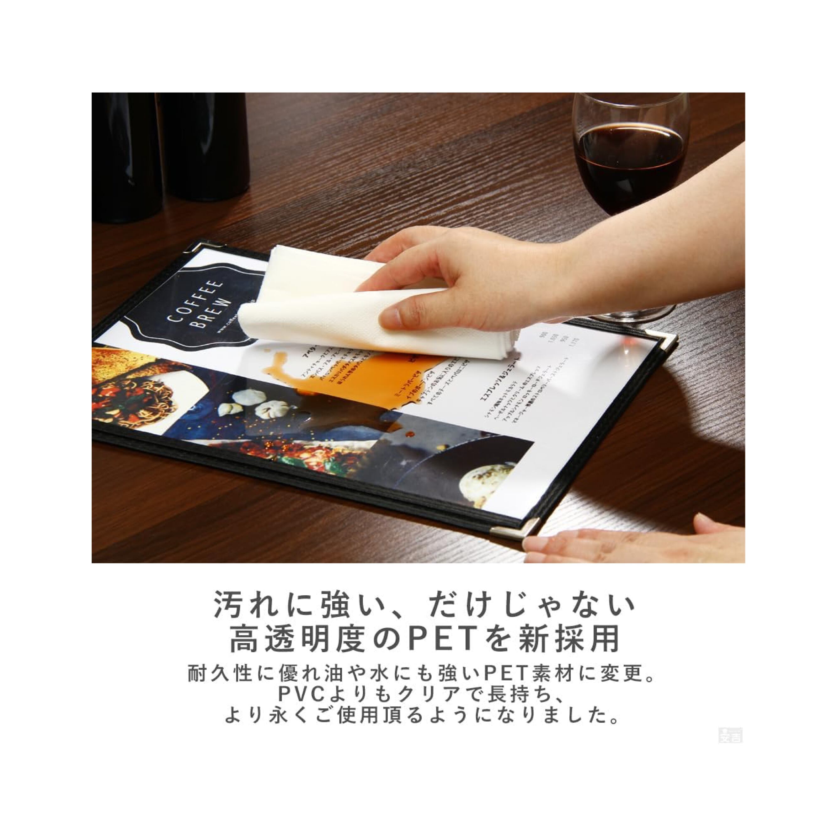 ● 清潔と安心をお届けする「メニューブック 10ページ (5枚10面) A4サイズ 黒」。この商品は、レストランやカフェなどでメニューを魅力的に展示するために特別に設計された実用的なアイテムです。特に、10ページのボリュームが嬉しいポイントです。